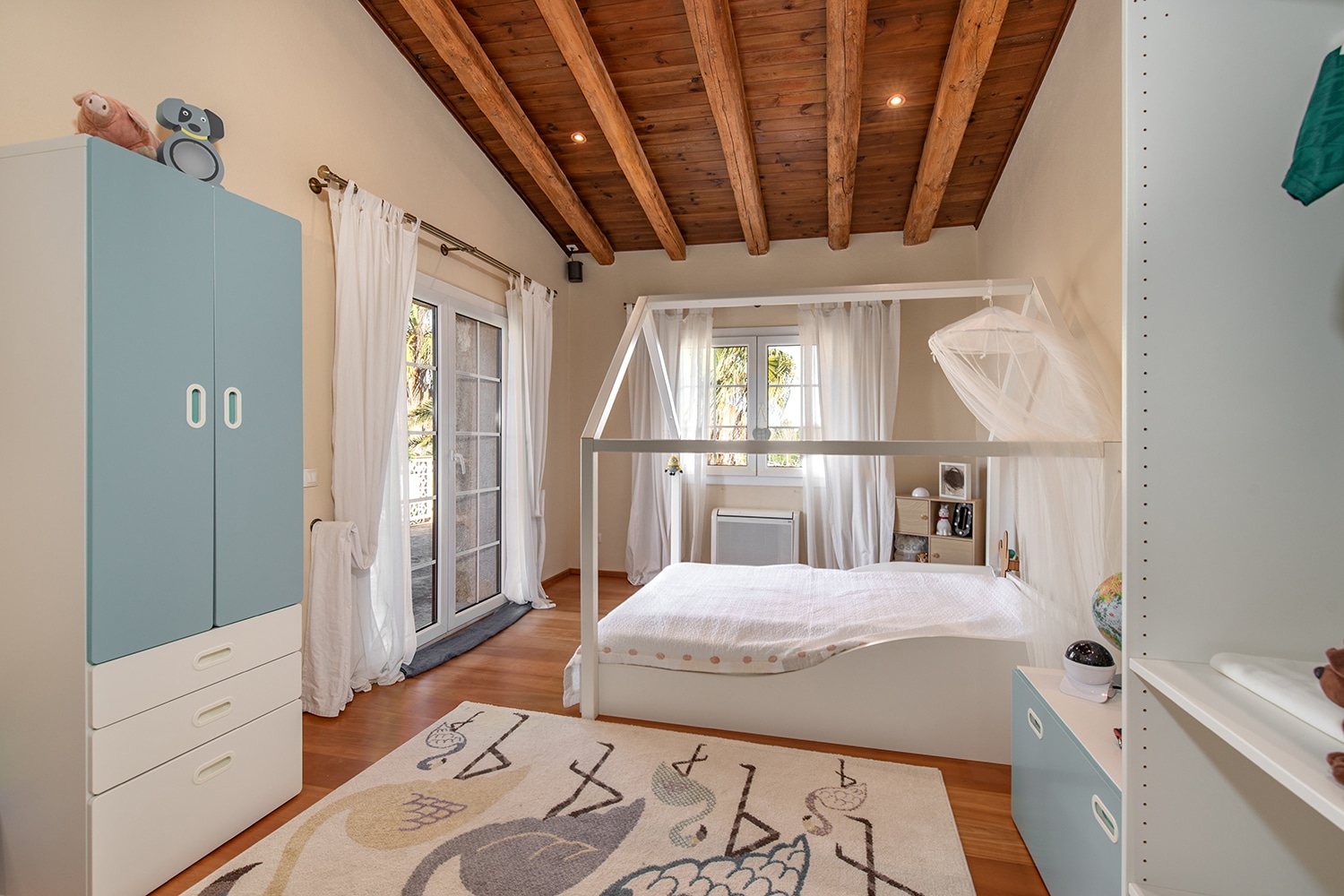Im Obergeschoss befinden sich das Hauptschlafzimmer mit begehbarer Kleiderkammer und Balkon, ein weiteres Schlafzimmer mit Balkon sowie ein großzügiges Wellness-Bad mit beeindruckender Design-Badewanne.